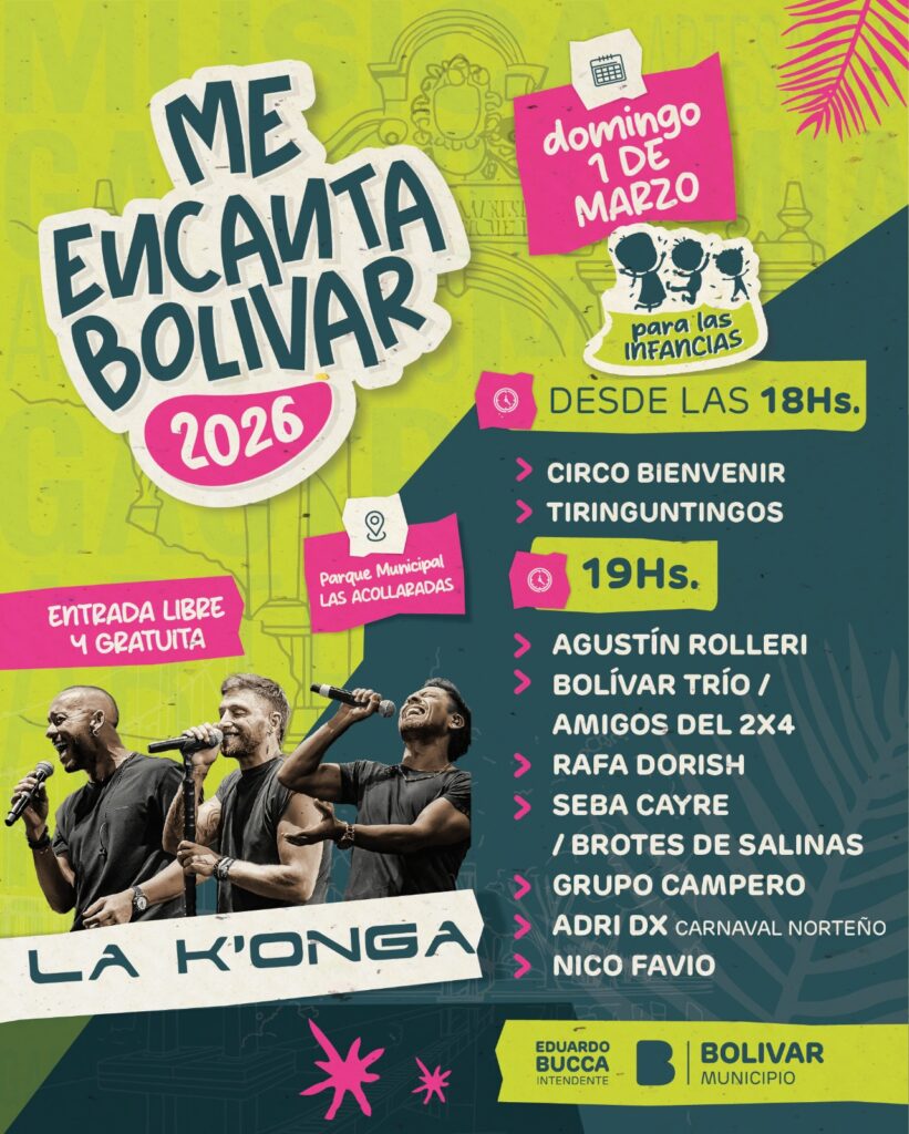 CÓMO SERÁ LA GRILLA DE ARTISTAS PARA ESTA NOCHE DE DOMINGO EN “ME ENCANTA BOLÍVAR 2026”