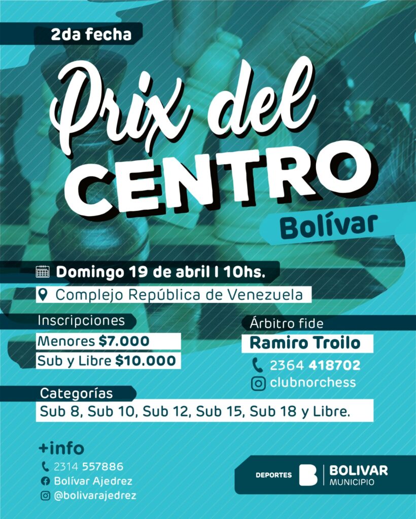Este domingo 19 de abril, Bolívar será sede de la segunda fecha del Prix del Centro de Ajedrez, un importante...