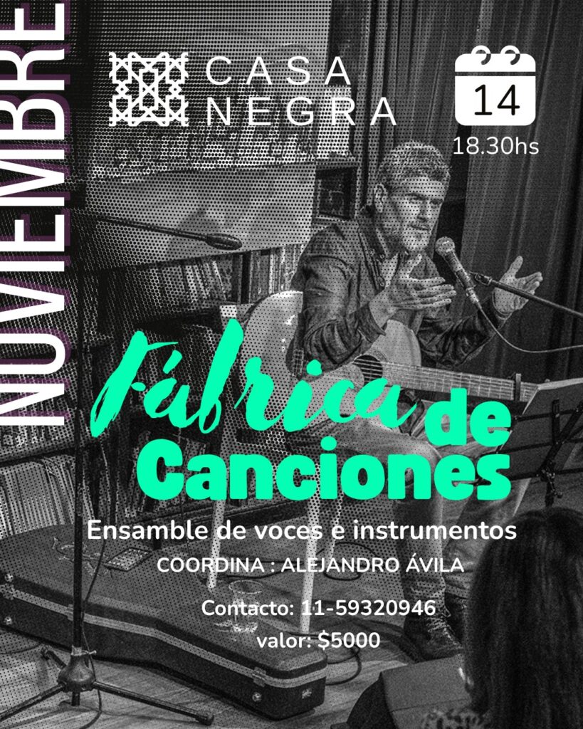 El guitarrista y compositor ha ofrecido en Casa Negra distintas experiencias musicales, como el taller Fábrica de Canciones —un espacio pensado para acercar el canto a todas las personas, sin importar su experiencia previa, que tendrá su segundo encuentro mañana desde las 18:30— y presentaciones junto al bandoneonista Rubén Exertier, dentro del dúo “Rock con chicharrón”, donde fusionaron chacareras, rock y reggae con notable creatividad.