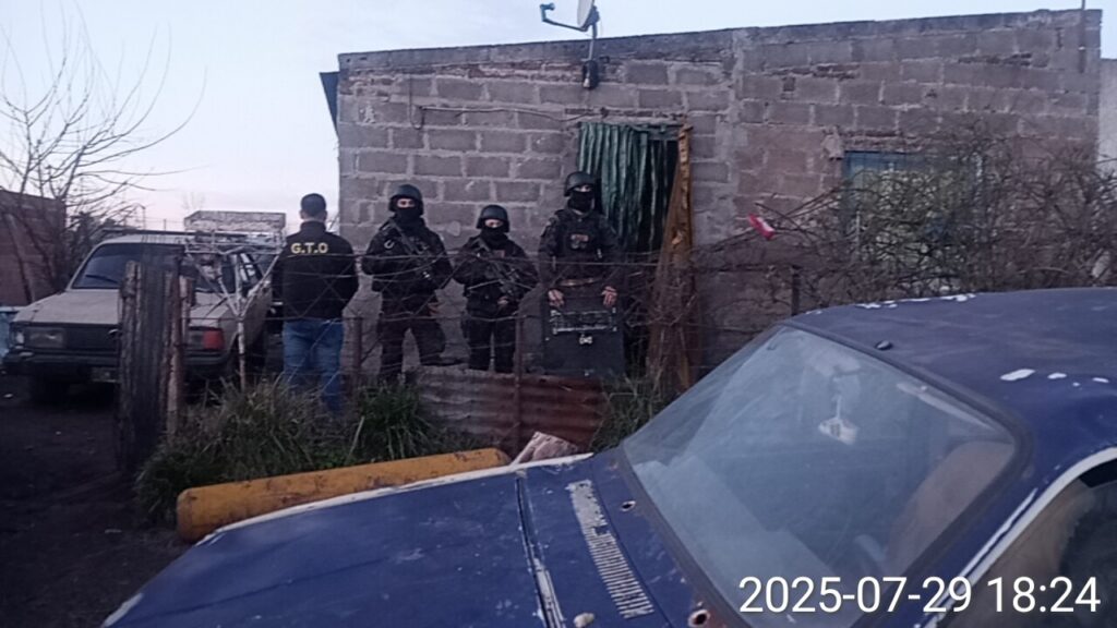 Los procedimientos fueron ordenados por el Juzgado de Garantías de Azul y se realizaron en domicilios ubicados en las calles Chatruc Migues y Carlos Gardel. Participaron efectivos del Gabinete Técnico Operativo de la Policía Departamental, con el apoyo del Grupo de Apoyo Departamental (GAD) y del Comando de Prevención.