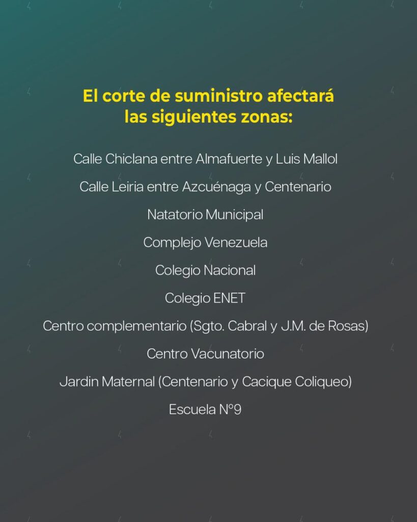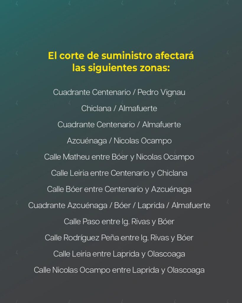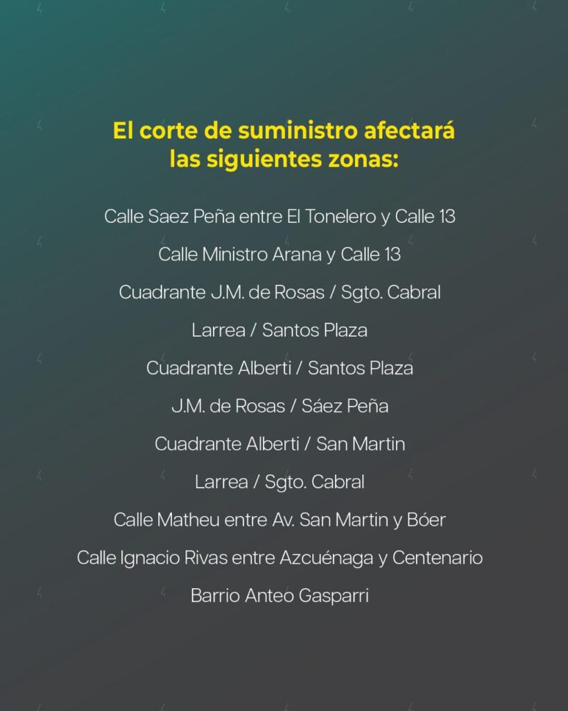 ANUNCIARON PARA ESTE JUEVES UN CORTE DE ENERGÍA EN DIVERSAS ÁREAS DE LA CIUDAD