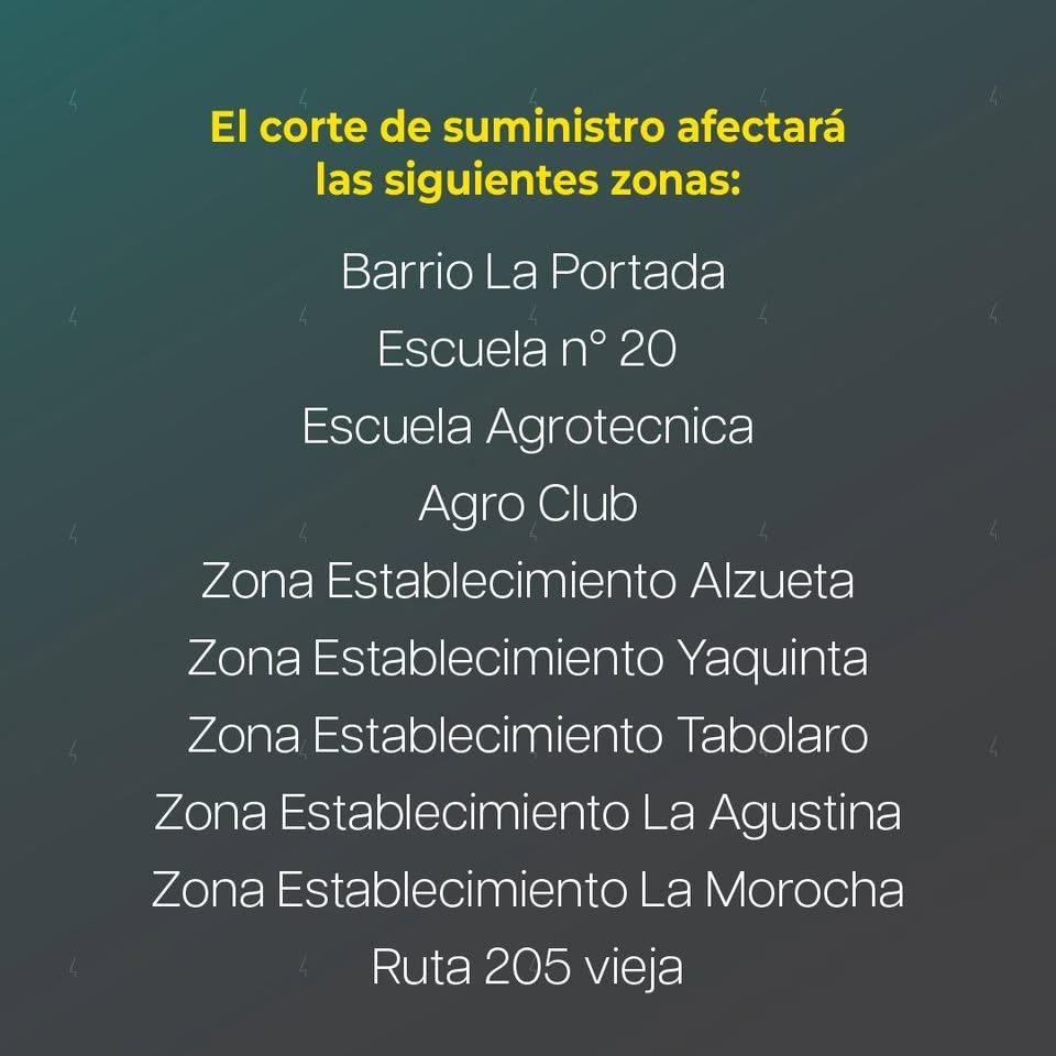 ANUNCIARON UN CORTE DE ENERGÍA PARA EL LUNES EN BARRIOS Y ZONAS RURALES