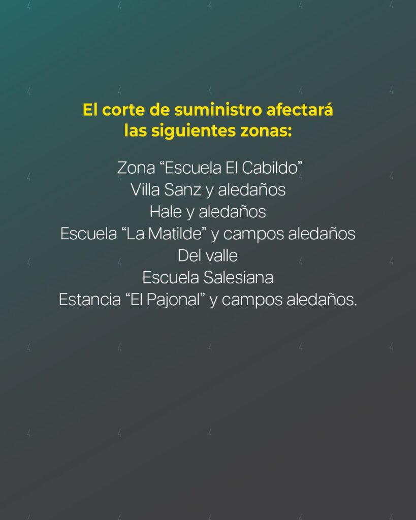 ANUNCIARON UN CORTE DE ENERGÍA PARA LA MAÑANA DEL MIÉRCOLES EN ZONA RURAL