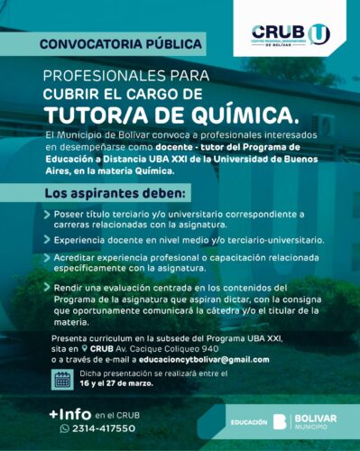 La Escuela de Educación Secundaria Técnica N°1 de Bolívar informó una modificación en el cronograma de recepción de legajos para...