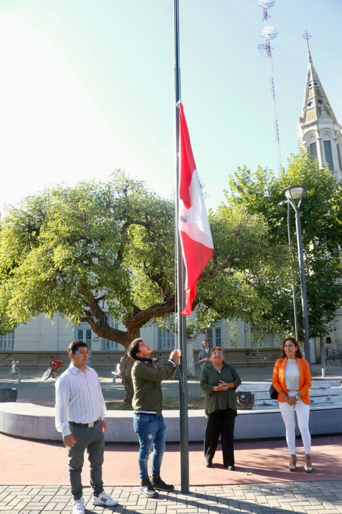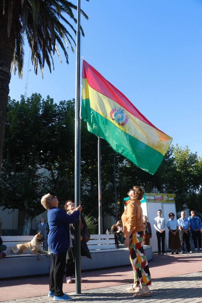 El acto fue acompañado por el intendente Eduardo ‘Bali’ Bucca, junto a vecinos y vecinas que participaron del izamiento de las banderas que representan a los países de la región y a los pueblos originarios.