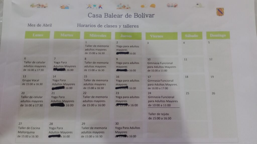 Entre las próximas iniciativas, anunciaron la entrega de sorrentinos y la realización de un chocolate el 10 de mayo en la sede, con capacidad limitada y producción casera. Además, detallaron una amplia oferta de talleres semanales que abarca desde clases de canto, cocina mallorquina y tejido solidario, hasta actividades orientadas a adultos mayores como yoga en silla, taller de la memoria y manejo de celulares, muchas de ellas con docentes especializados.