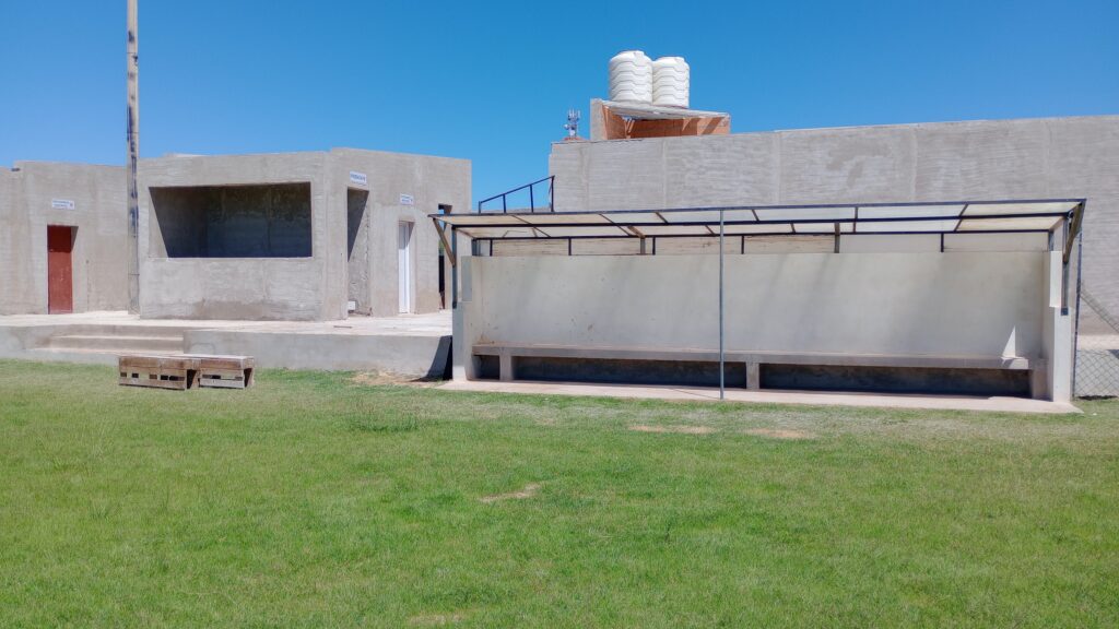 En cuanto a las comodidades, explicó que se avanzó “en lo básico”: cantina, pulmón para el sector visitante, vestuarios amplios con sanitarios y bancos. Restan las tribunas, terminar detalles internos y cerrar el predio sobre calle Ushuaia con un tapial. “Hoy es una inauguración básica para arrancar a jugar”, aclaró, y remarcó el alivio económico que significará dejar de alquilar cancha: “Será no pagar un millón de pesos, que vale hoy un alquiler de cancha”. También agradeció al municipio por el predio: “Mil gracias a la Muni que nos donó el predio, y Bali nos dio una mano grande; si no hubiera sido por eso, no hubiera sido posible”.