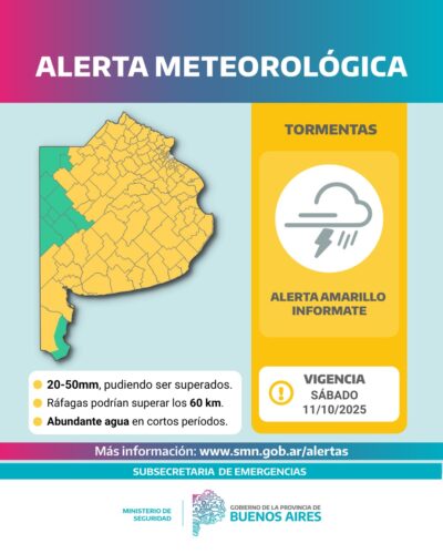 El Servicio Meteorológico Nacional (SMN) emitió un alerta amarilla que abarca a los partidos de Bolívar, Carlos Casares, Carlos Tejedor,...