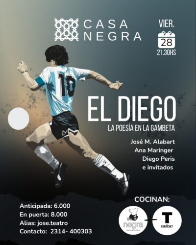 Este viernes 28 de noviembre, a las 21.30, Casa Negra será escenario de una obra poético-musical dedicada a Diego Maradona,...