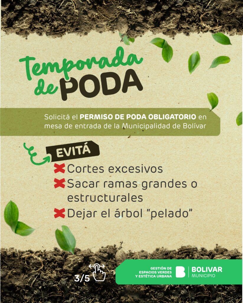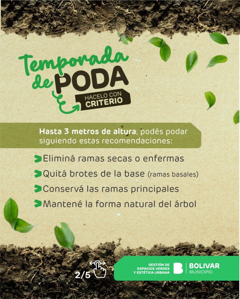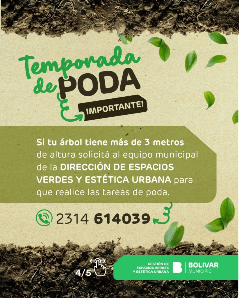 Parte de prensa – Del 2 de mayo al 1 de agosto comienza la temporada de poda y desde el Municipio, a través de la Dirección de Espacios Verdes y Estética Urbana, encabezada por Damián Betancour, se impulsa una campaña de concientización sobre la importancia de realizar una poda responsable, con el objetivo de preservar y cuidar el arbolado público de la ciudad.