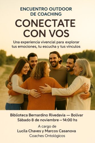 El sábado 8 de noviembre, la Biblioteca Bernardino Rivadavia será sede del encuentro “Conectate con vos”, una propuesta coordinada por los coaches ontológicos Lucila Chaves y Marcos Casanova, orientada a la inteligencia emocional y al autoconocimiento. La jornada, que se desarrollará entre las 14 y las 18.30, propone “vivir experiencias, dinámicas y aprendizajes que inviten a reflexionar y potenciar el bienestar personal y relacional”.