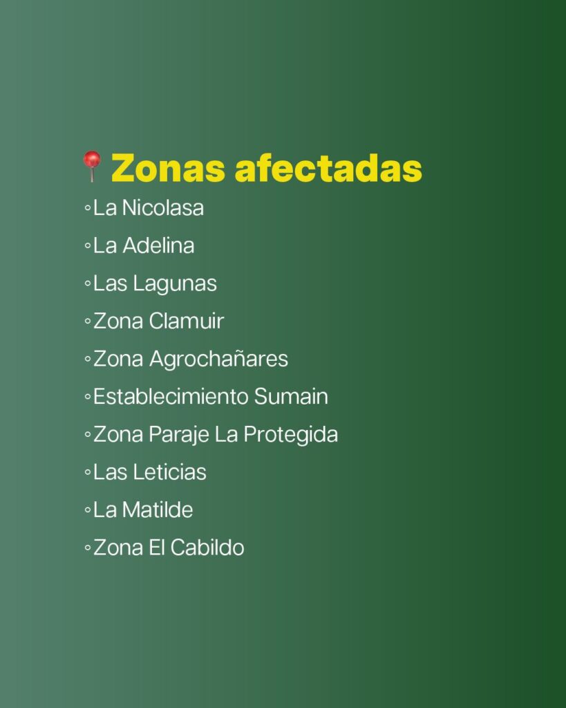 Se aclaró que el corte no se suspenderá por condiciones climáticas adversas, como lluvias o tormentas. Para consultas o mayor información, los asociados pueden comunicarse al 0800 333 4615.