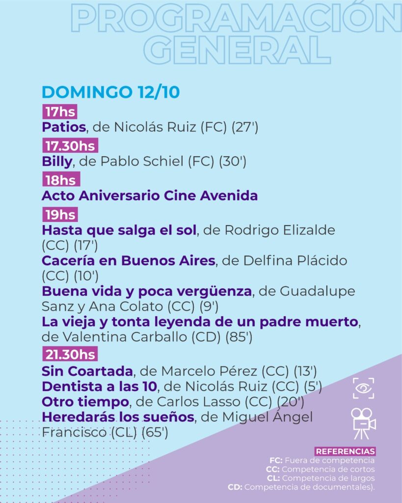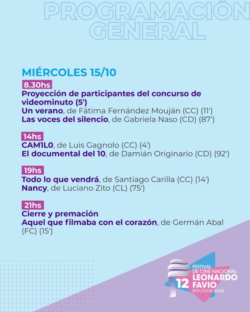 Marchione adelantó que el domingo 12, desde las 17 horas, habrá un “continuado” especial con producciones donde participaron realizadores bolivarenses, entre ellas el largometraje “Heredarás los sueños” de Miki Francisco, y documentales como “Patios” y “Billy”, estos últimos fuera de competencia. “Nos parece buenísimo tener una pantalla como el Cine Avenida para mostrar lo que trabajadores y trabajadoras del cine bolivarenses pueden hacer tanto aquí como en otros lugares”, subrayó.