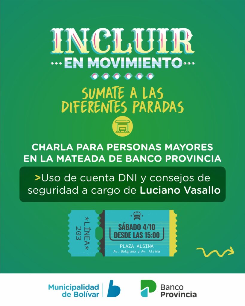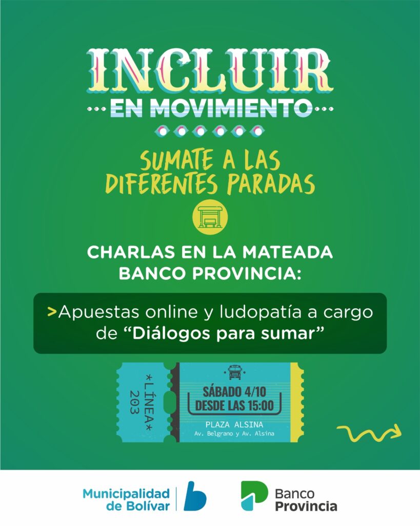 La propuesta ofrece charlas en el punto denominado “Mateada Banco Provincia” sobre el uso de Cuenta DNI y consejos de seguridad a cargo de Luciano Vasallo dirigida a adultos mayores; y sobre apuestas online y ludopatía: el equipo de Diálogos para Sumar compartirá pautas y recursos para abordar esta problemática, destinada a jóvenes.