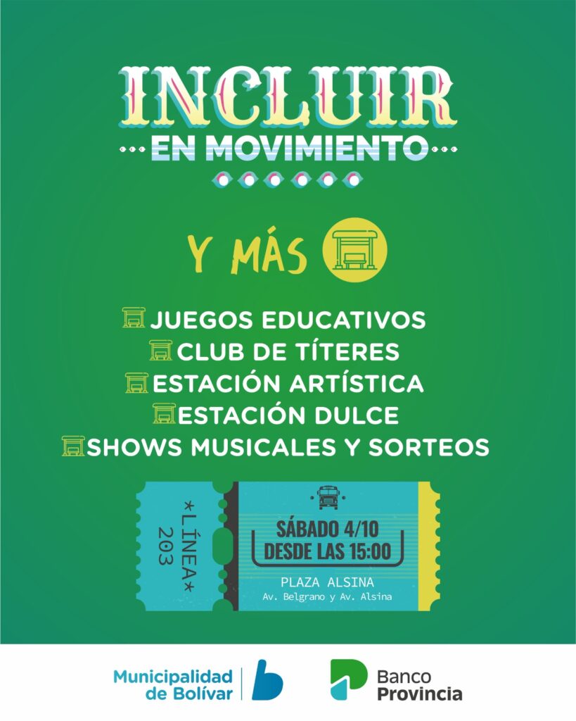 Asimismo, habrá una dinámica de talleres en las distintas paradas del colectivo del Banco Provincia. Estarán con música en vivo las bandas “La Caravana” y “Houston y los problemas”; y habrá una estación dulce con merienda para compartir. Es importante mencionar que la actividad se suspende por lluvia.