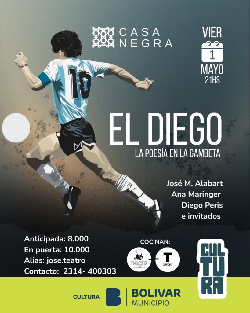 Este viernes 1° de mayo, el espectáculo poético-musical “El Diego, la poesía en la gambeta” tendrá su tercera presentación en Casa Negra, consolidando una propuesta que rinde homenaje a la figura de Diego Armando Maradona desde la emoción, la música y la palabra. Tras dos funciones que lograron una fuerte conexión con el público, la obra vuelve a escena manteniendo su esencia y reafirmando el interés que ha despertado en la comunidad.