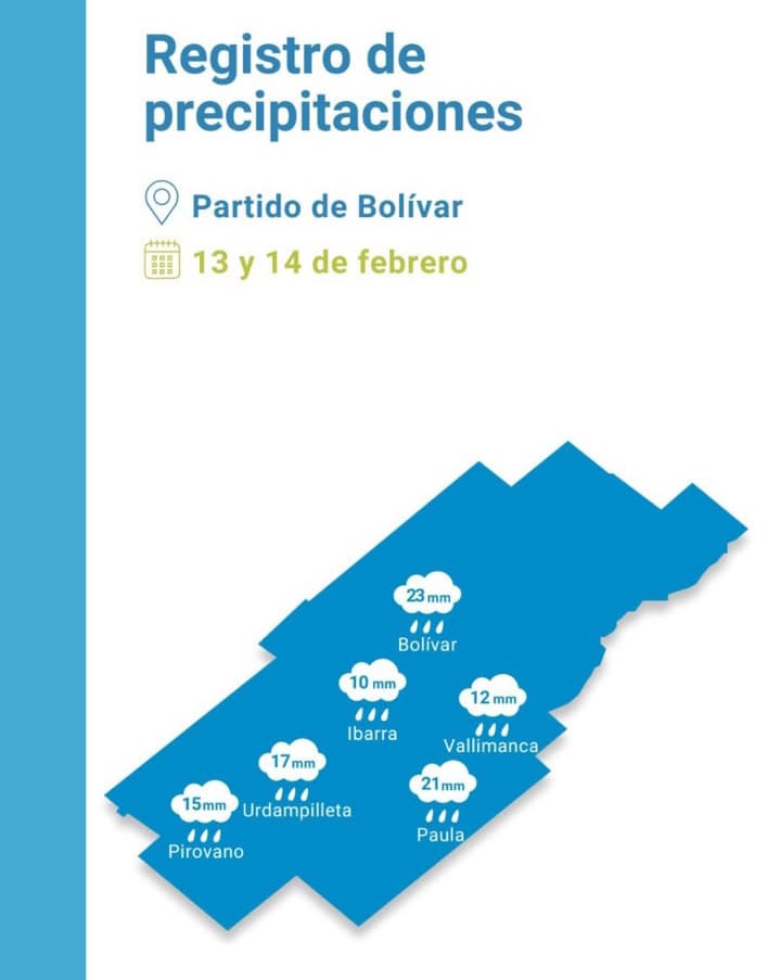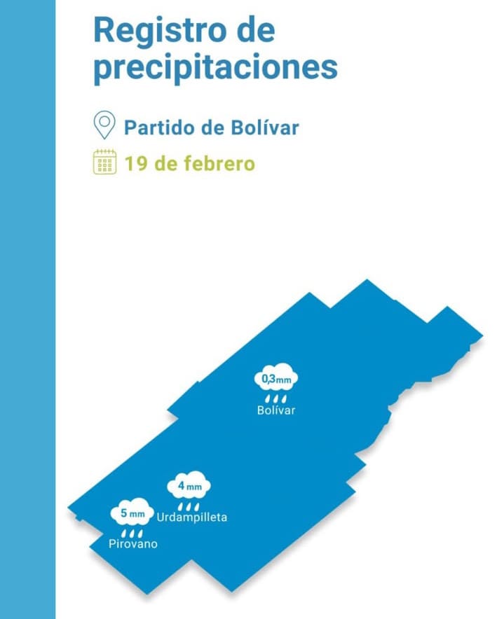 En líneas generales, las lluvias, aunque escasas, han sido parejas. Ibarra y Vallimanca resultaron los lugares con menos agua recibida, mientras que en el resto del distrito se superaron los 20 milímetros.