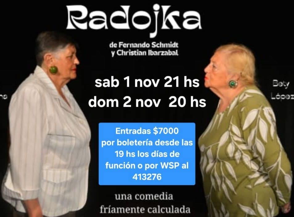 Radojka es una comedia “fríamente calculada”, escrita por Fernando Schmidt y Christian Ibarzábal. El Mangrullo la estrenó el pasado 5 de octubre con las actuaciones de Mirta Jaimerena y Beatriz López y la dirección de Pablo Villanueva.