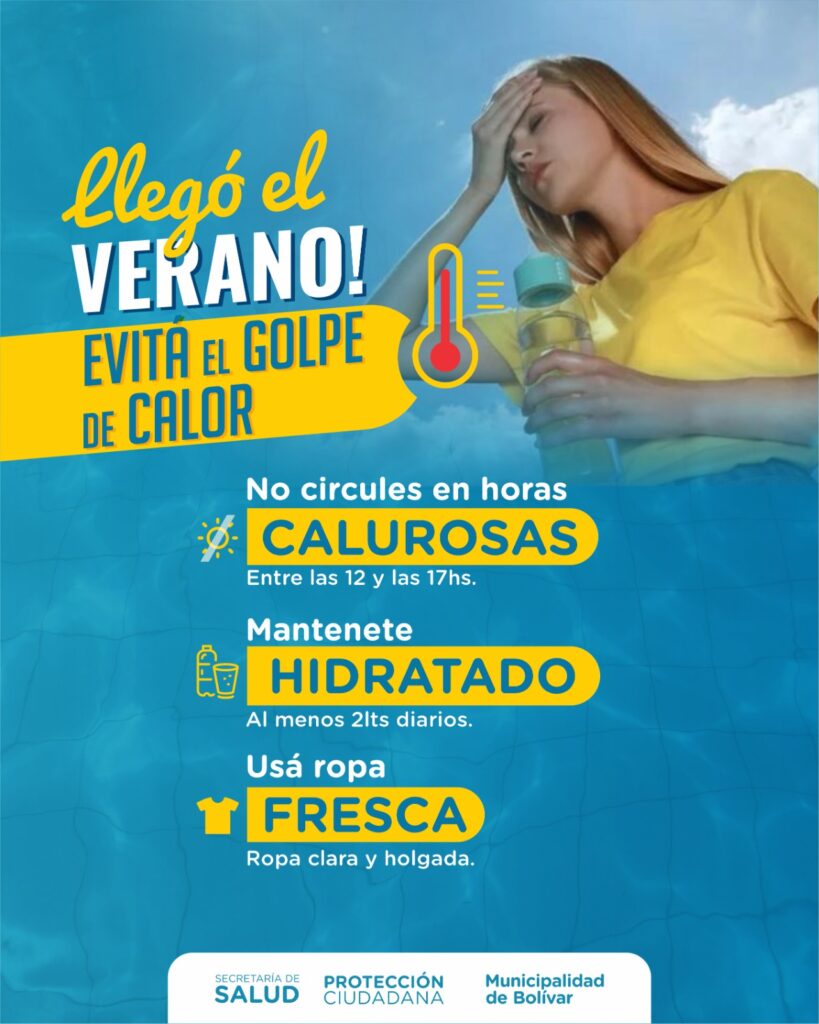 Ante las altas temperaturas previstas, el Municipio brinda una serie de recomendaciones para prevenir golpes de calor y cuidar la salud de la comunidad. Cualquier persona puede verse afectada por un golpe de calor; sin embargo, deben extremar los cuidados las embarazadas, bebés, niños y niñas, adultos mayores de 65 años y personas con enfermedades crónicas.