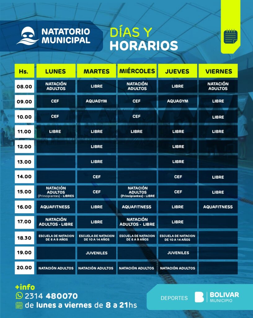 El coordinador del Natatorio Municipal, Ariel Machadino, brindó detalles sobre el inicio de la temporada 2026, que comenzará en el mes de marzo con nuevas actividades y la continuidad de las propuestas tradicionales que cada año convocan a vecinos y vecinas de todas las edades. El Natatorio funcionará de lunes a viernes en el horario corrido de 8 a 21h, ampliando la disponibilidad para que más personas puedan acceder a las distintas disciplinas.