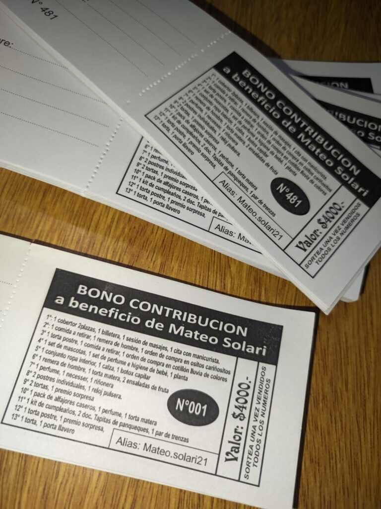 Ante esta situación, la familia decidió lanzar una rifa solidaria para poder afrontar los gastos de viaje y hospedaje. Se pusieron a la venta 500 números, a un valor de 4.000 pesos cada uno, con 13 ganadores y más de 30 premios. El sorteo se realizará en vivo por Radio 104.5 y será transmitido también por redes sociales. Jacqueline aclaró que, en caso de que alguna de las personas favorecidas no esté escuchando la radio ni conectada en ese momento, será contactada directamente y el premio le será acercado a su domicilio.