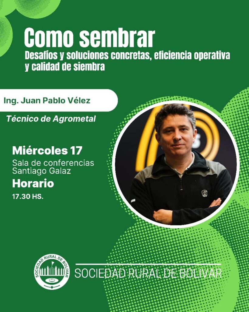 La tarde continuará con el Ciclo de Charlas, que abrirá a las 17.30 con la disertación del ingeniero Juan Pablo Vélez (Agrometal), bajo el título “Cómo sembrar desafíos y soluciones concretas”, centrada en la eficiencia operativa y la calidad de siembra.