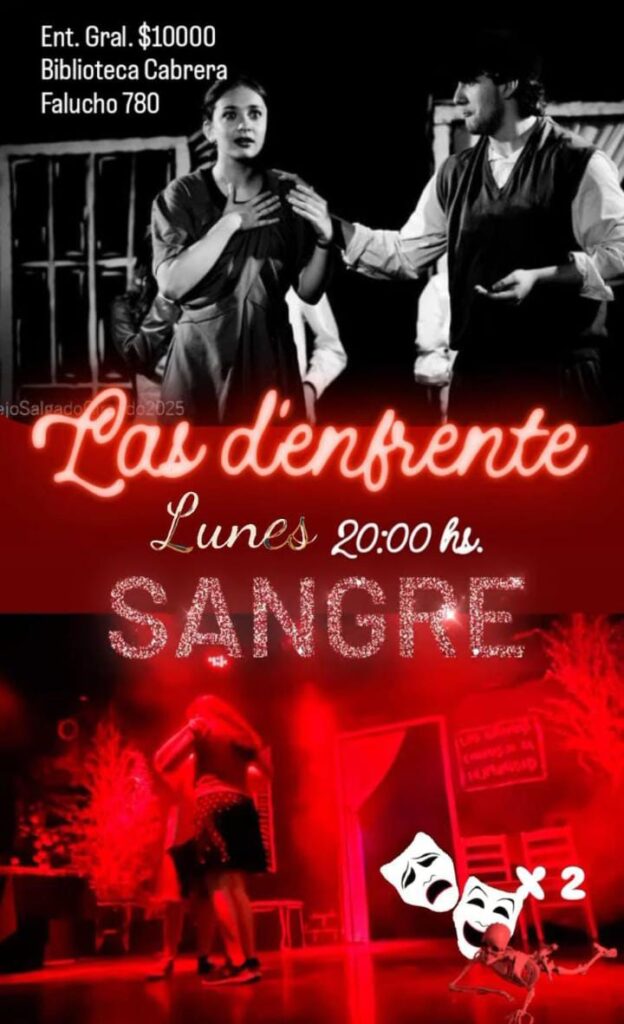 Este lunes 29 a las 20:00 horas, los jóvenes de montaje del grupo de teatro Vamos de Nuevo (VdN) presentan una nueva y última función con doble propuesta escénica: “Las d’enfrente” y “Sangre”. Con una sola entrada, el público podrá disfrutar de ambas obras, interpretadas por el elenco juvenil del grupo.