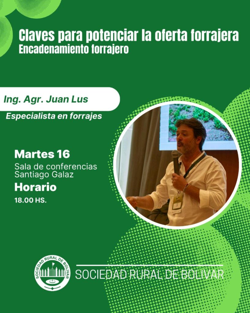 A las 17.30, será el turno del Laboratorio Zoovac, que presentará su propuesta institucional, y a las 18.00 el ingeniero agrónomo Juan Lus disertará sobre claves para potenciar la oferta forrajera.