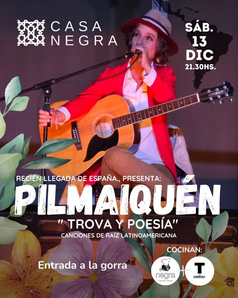 Este sábado, Casa Negra será escenario de una noche especial con la presentación de Pilmaiquén, artista santafesina recientemente llegada de su gira por España. Viajera incansable, llega con su guitarra y un repertorio atravesado por la trova y la poesía, con canciones de raíz latinoamericana que invitan a escuchar y sentir.