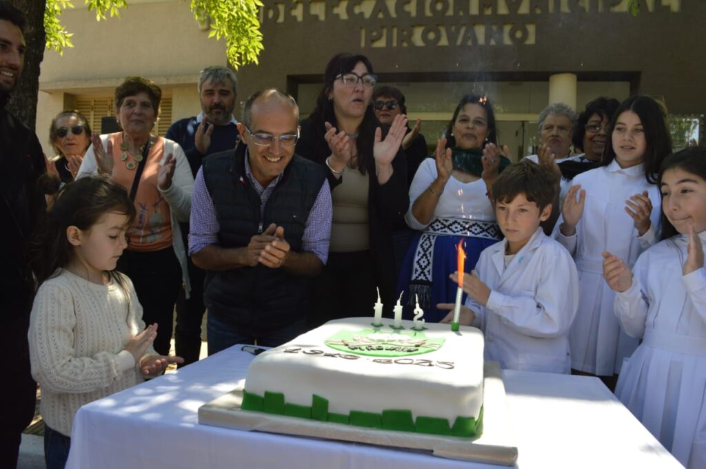 Niños y niñas de la Escuela Primaria participaron activamente del acto, entonando junto al intendente el tradicional “feliz cumpleaños” a la localidad. Luego compartieron un desayuno comunitario, símbolo de unión y pertenencia entre generaciones.
