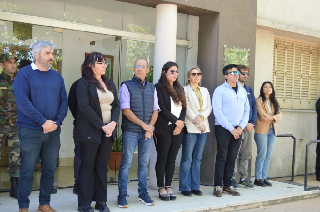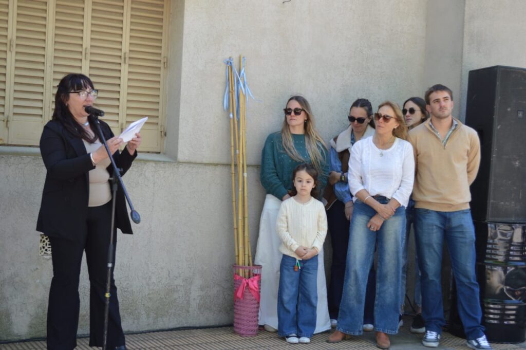 El intendente Marcos Pisano, acompañado por el secretario de Gobierno Marcos Beorlegui, acompañó a la delegada municipal Romina Iribarne en la conmemoración. Banderas de ceremonia de distintas escuelas e instituciones intermedias dieron el marco protocolar a una jornada que combinó solemnidad, cultura y celebración popular.