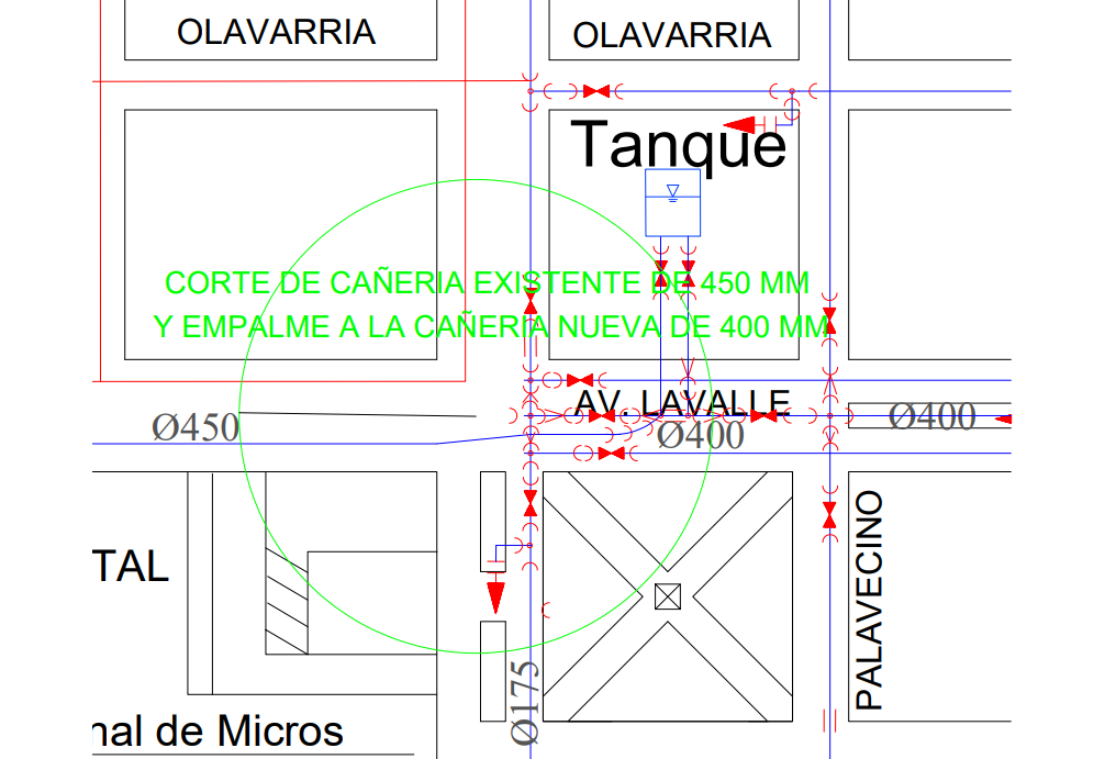 El corte total del suministro se debe al empalme de cañería de 450mm existente con la cañería de 400mm de la obra en curso.