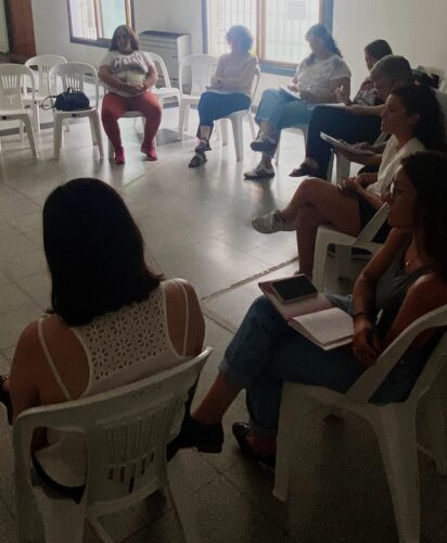 En relación al abordaje de las violencias, se invitó a las instituciones a sumarse a la Mesa Local contra las Violencias, acercando herramientas y recurseros con contactos de las áreas de Género y Derechos Humanos para la atención y derivación de situaciones de emergencia.