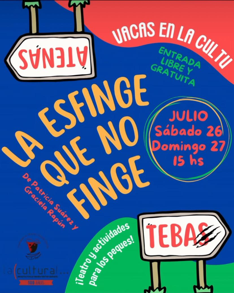 Ambos días, a partir de las 15 horas, se pondrá en escena la obra “La esfinge que no finge” en la biblioteca sita en Avenida San Martín 1065. Las jornadas también contarán con otras actividades para los más chicos. La entrada es libre y gratuita.