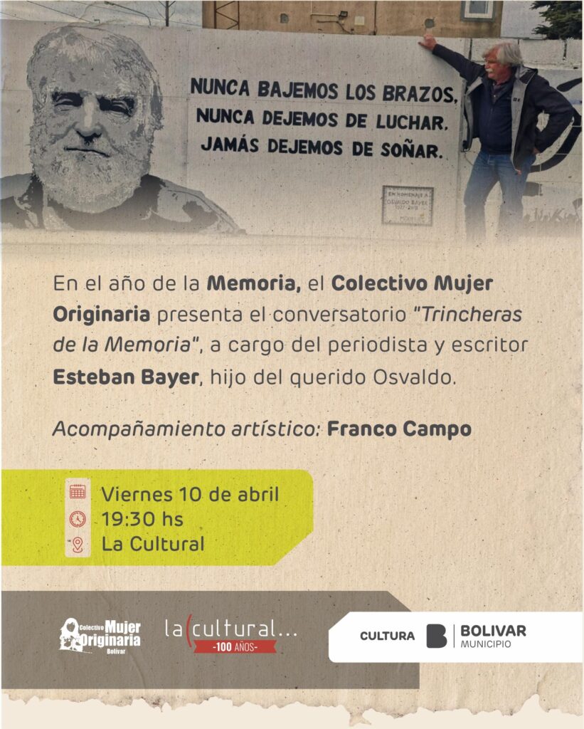 El viernes a las 19:30, en tanto, la sede será La Cultural para un conversatorio que estará a cargo del periodista y escritor Esteban Bayer (hijo de Osvaldo) y que tendrá el acompañamiento artístico de Franco Campo.