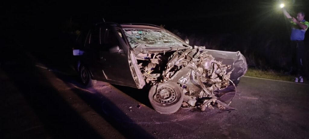 En el anochecer de este jueves ocurrió un violento accidente en el tramo entre Bolívar e Ibarra, cuando, según se pudo saber, el conductor de un automóvil Volkswagen Golf habría perdido el control del vehículo al intentar esquivar un pozo, colisionando con el lateral de un camión que circulaba en dirección contraria.